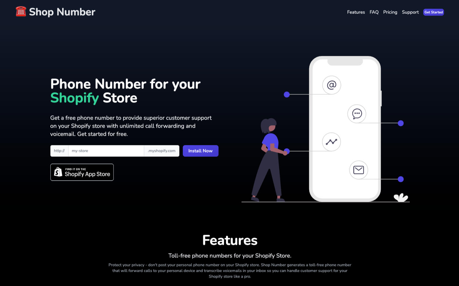 Shopnumber was a product for Shopify merchants to create a phone number for their store. You can use our new product Cloud Number to get a virtual phone number for your Shopify Store.Shopnumber was built by It's Fine, LLC. We also built an app to get a temp phone number and send an online fax.